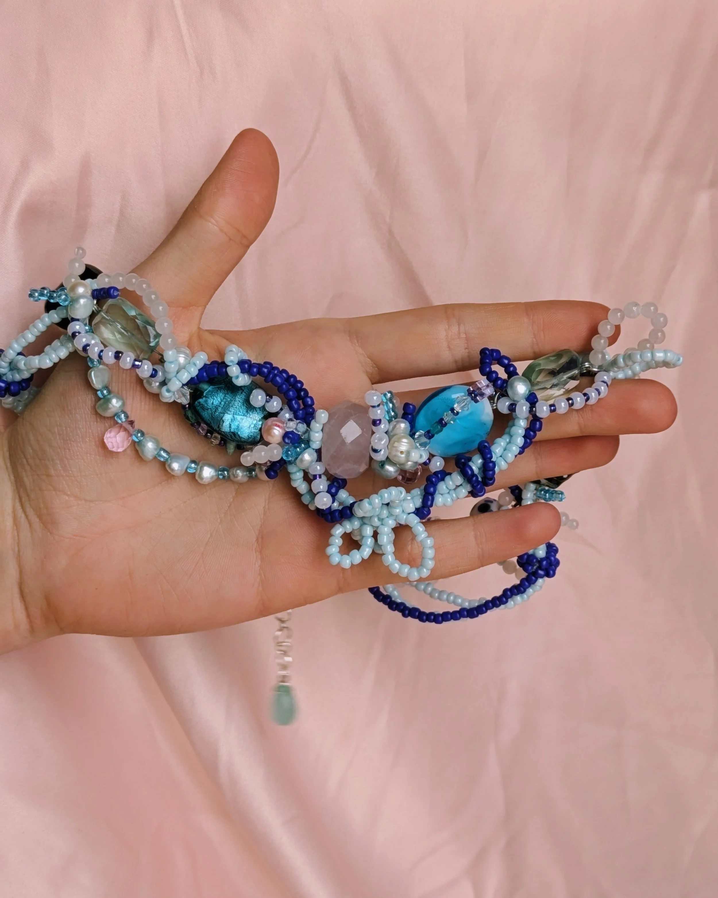 BUBBLE TROUBLE is a necklace inspired by troubled water, tsunamis and frozen oceans. I also tried to capture the image of uncontrollable foam and soap bubbles