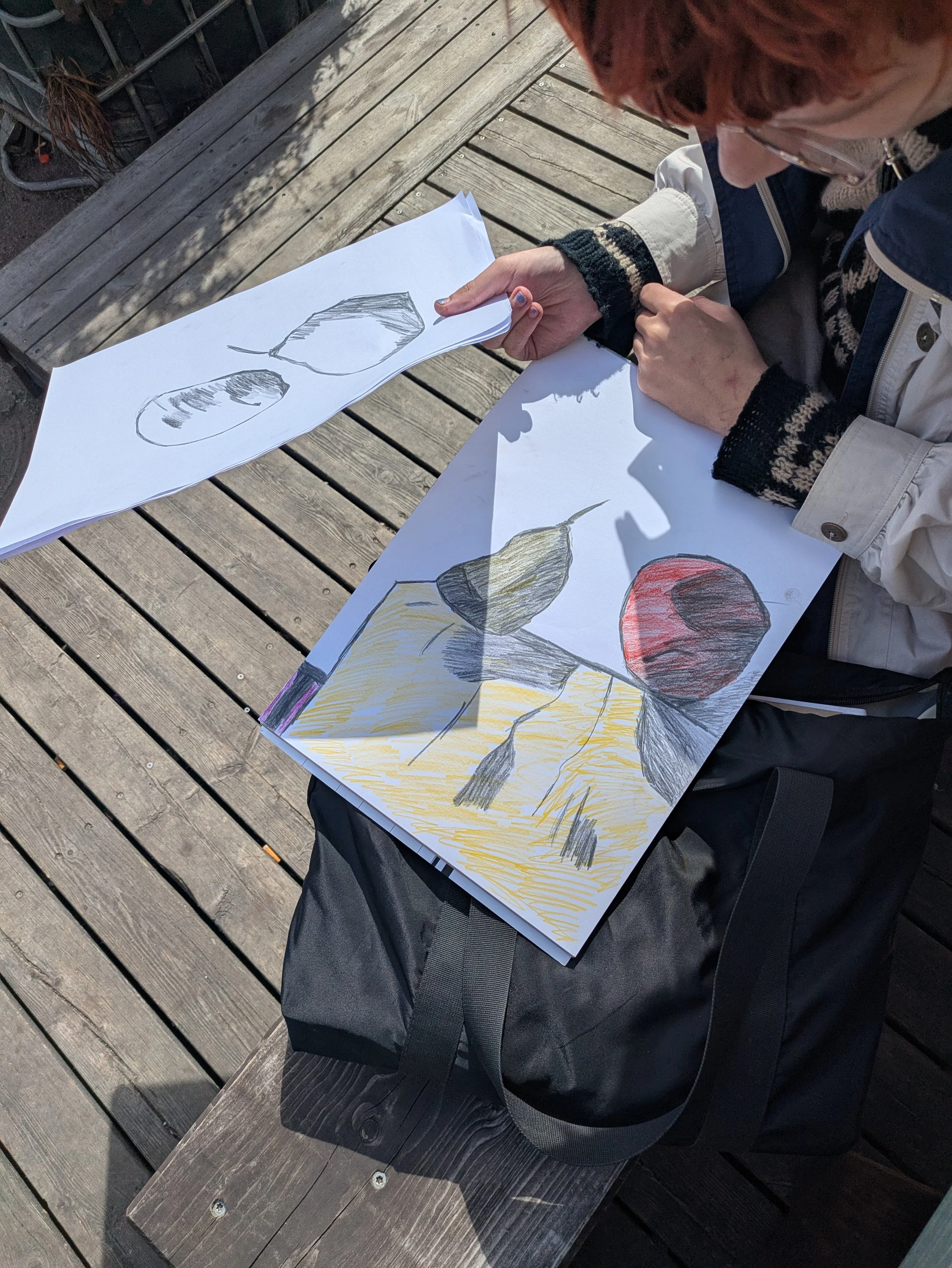 Kursisterne fik mulighed for at gå rundt på området og tegne omgivelserne, så der kom mere fokus på hvordan man laver en god komposition ud fra, hvad man ser i virkeligheden kontra hvis man tegner efter et billede.