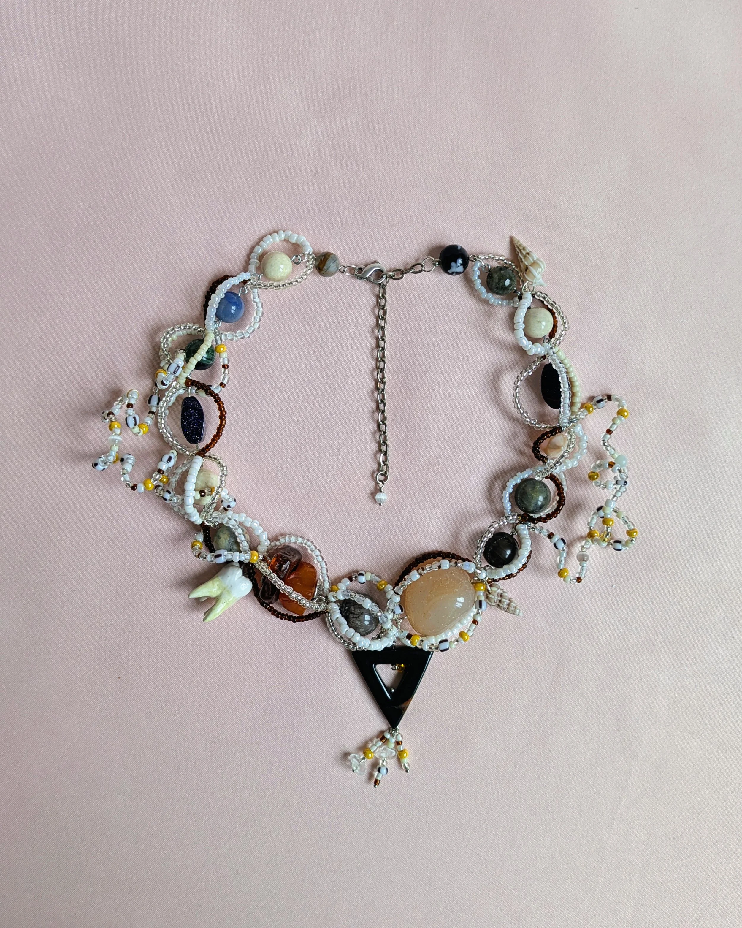 BIRCH is a powerful force while being calm as a mountain. this necklace embodies the silent kind of witchcraft that takes place when snowflakes are formed and foam is created on the sea beach
