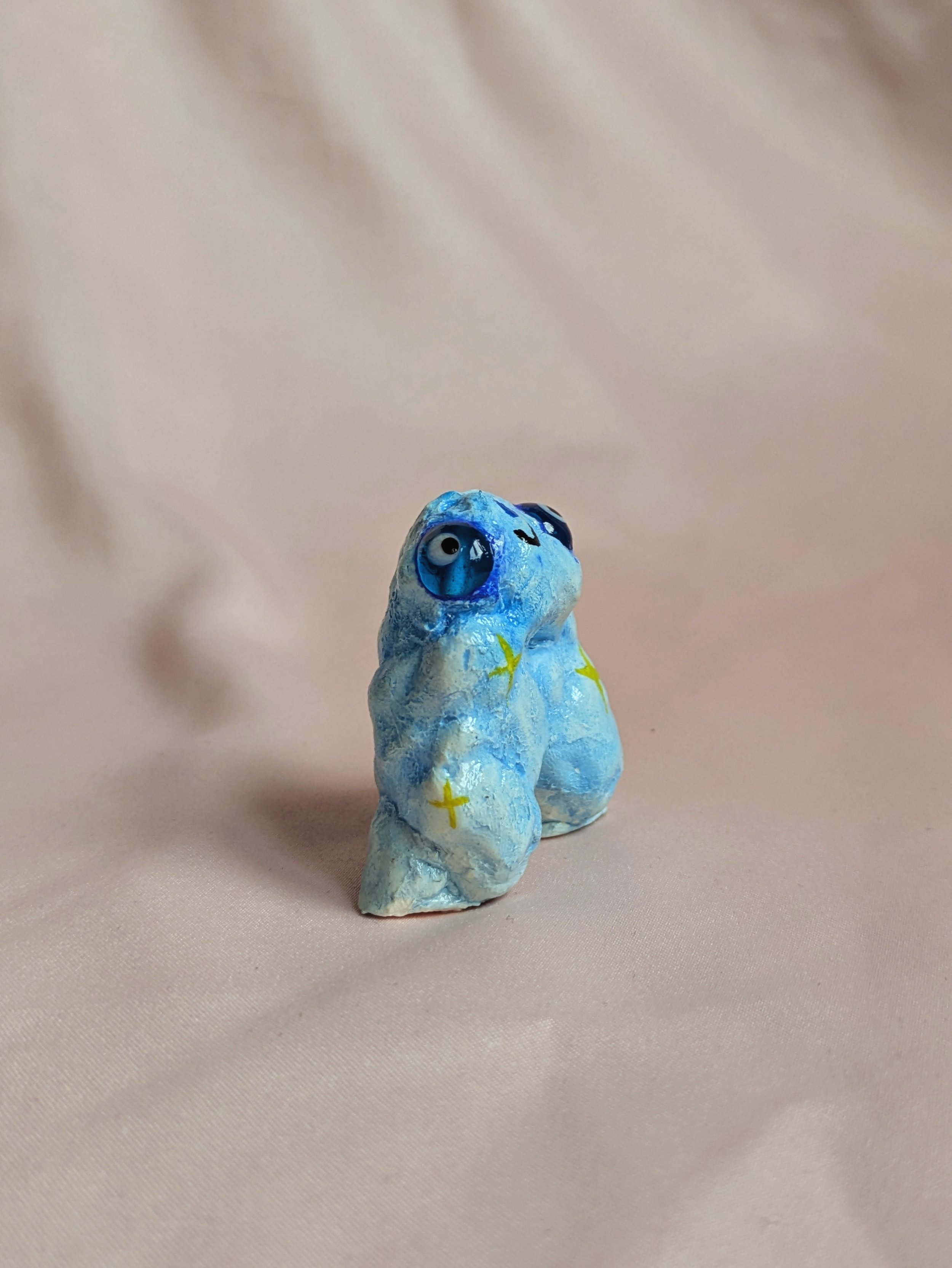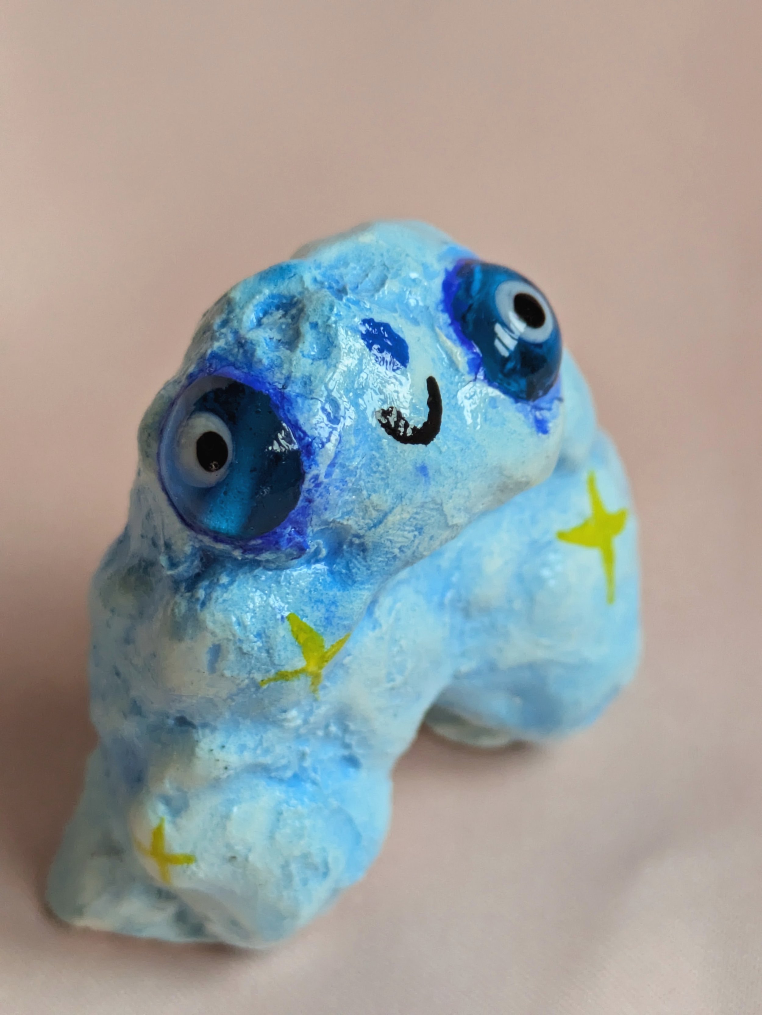 ELVIS seems to be surprised by most anything, and maybe a bit restless. it might be adhd, or it might be the fact that he is bright yellow and has horns??? trans king nonetheless, and one hell of a friend!