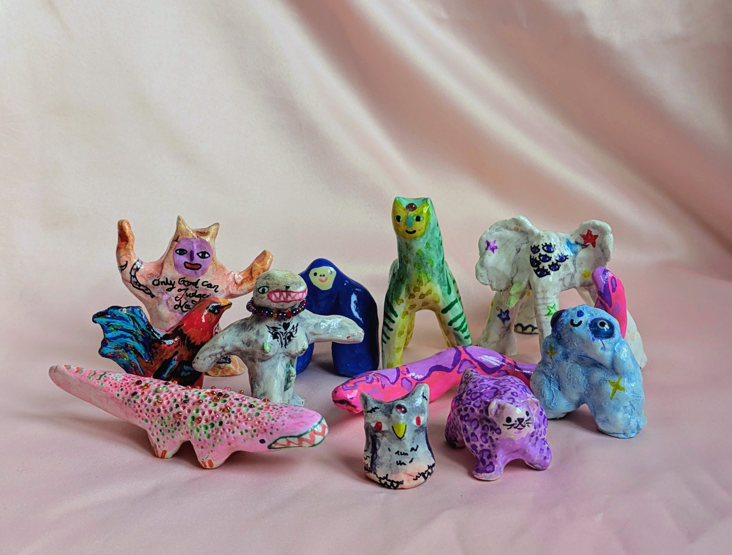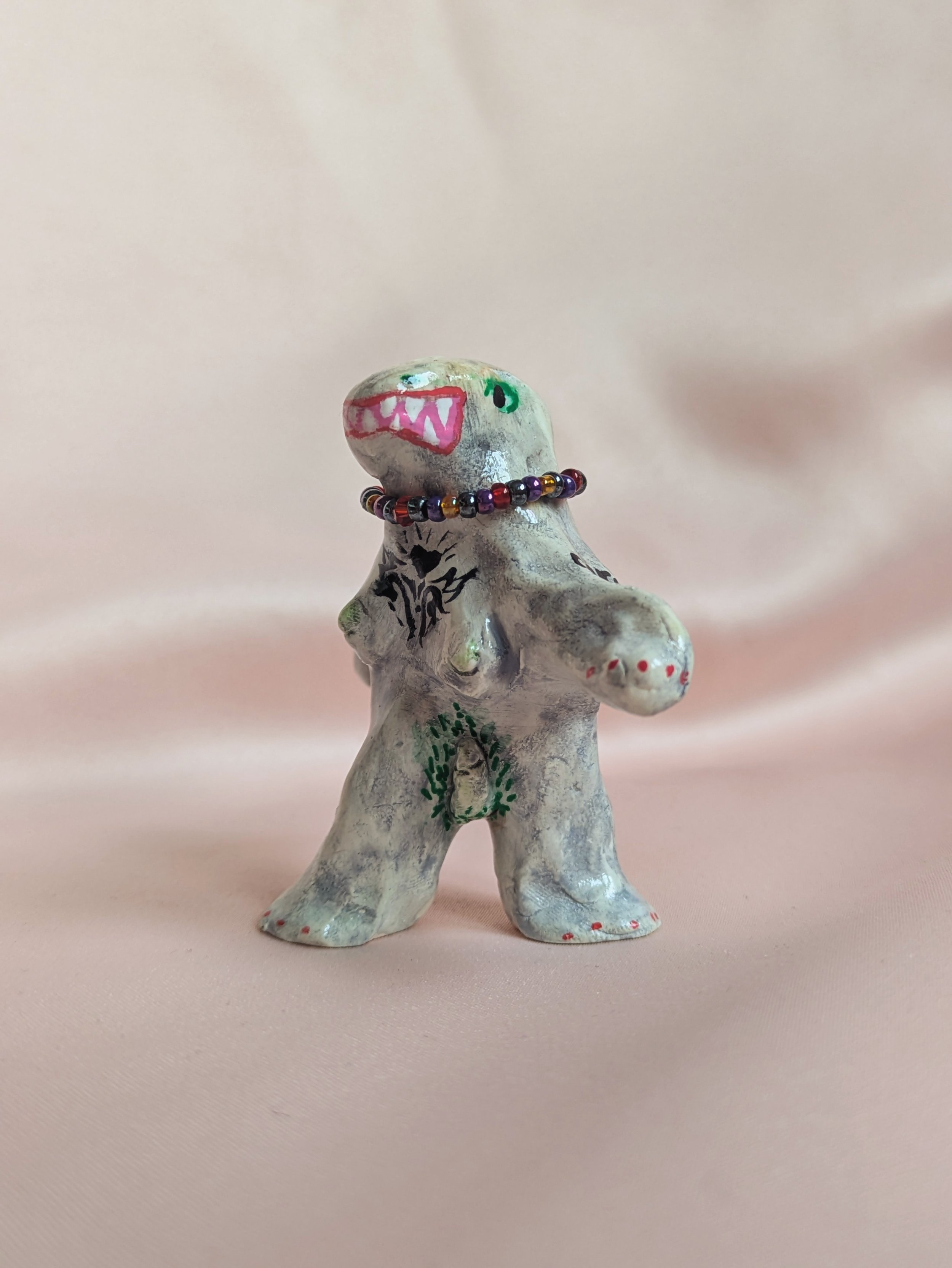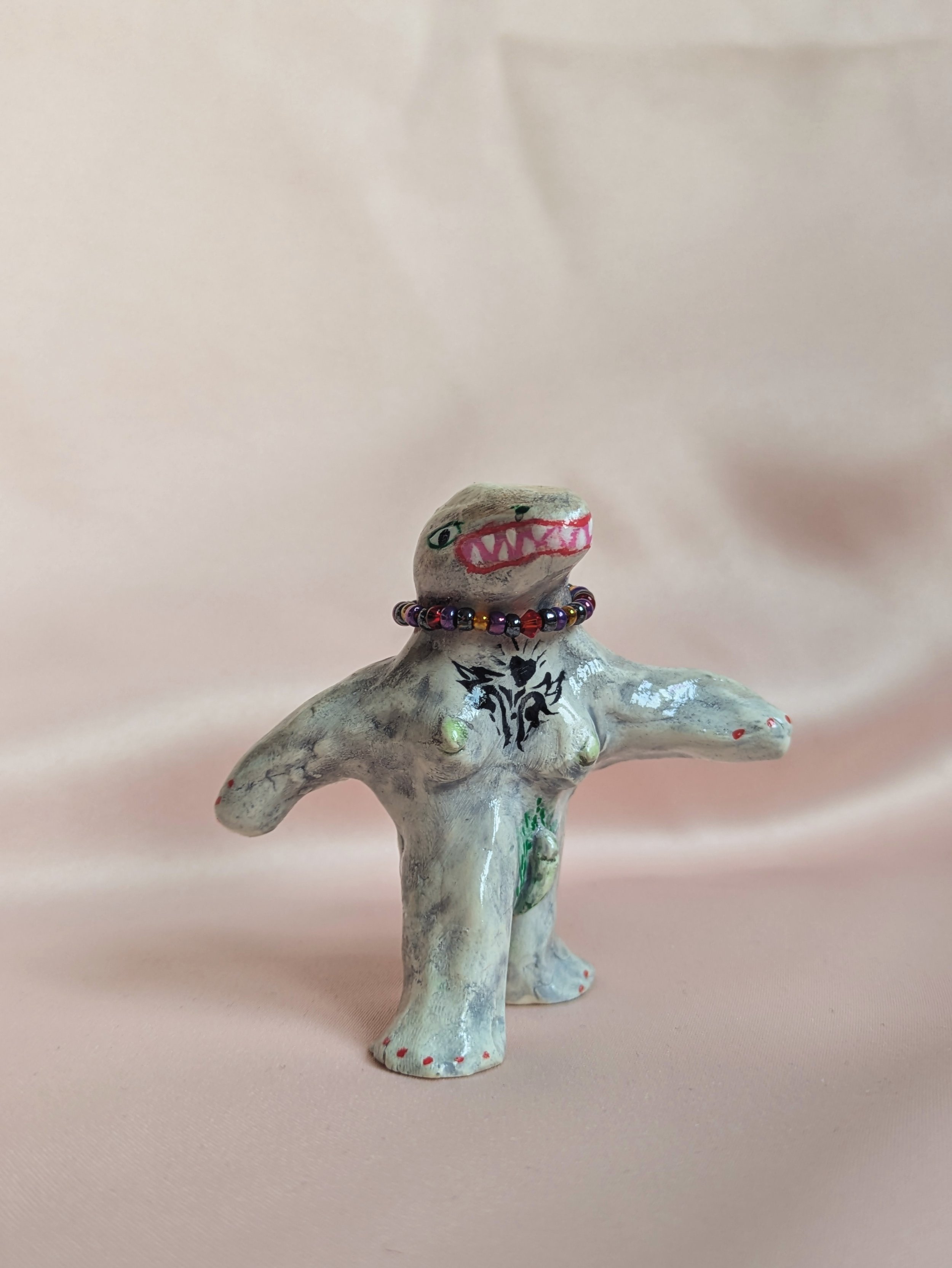 SNEK is a part of the ZOOKEEPERS NIGHTMARE series, containing eleven clay figures handmade by noah falke. Much like the HOLD ME TIGHT, NEVER LET ME GO clay series, this one also explores an imaginary world filled with magic. the figures are all made in a “wabi sabi” style where their flaws are a part of what makes them special and unique.