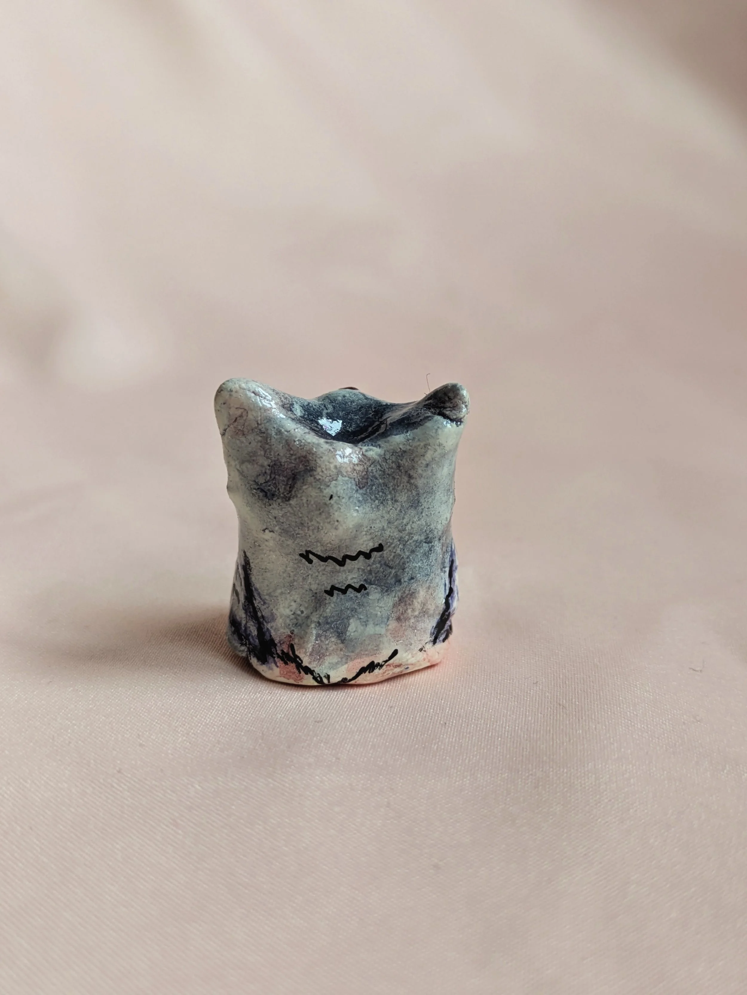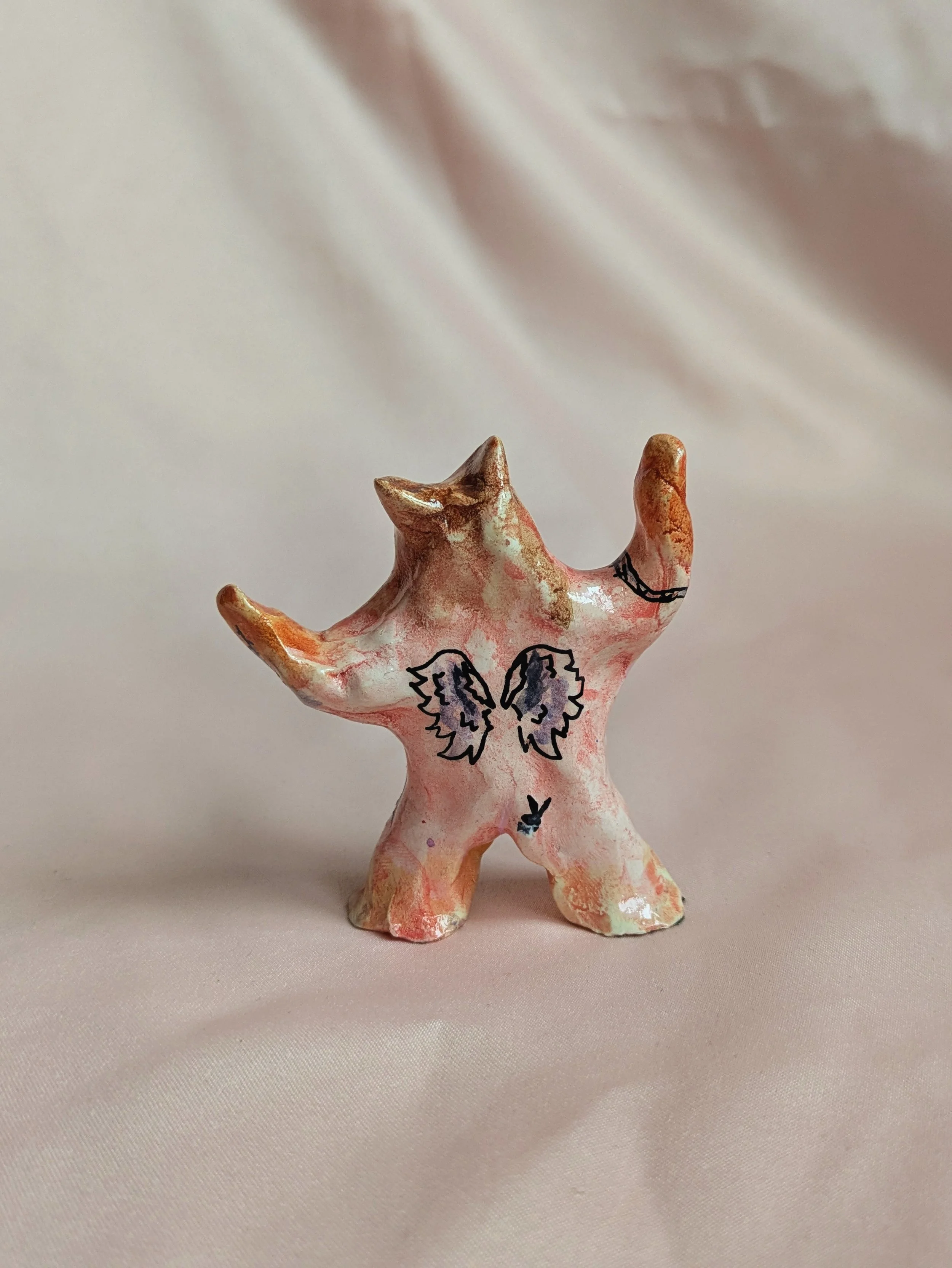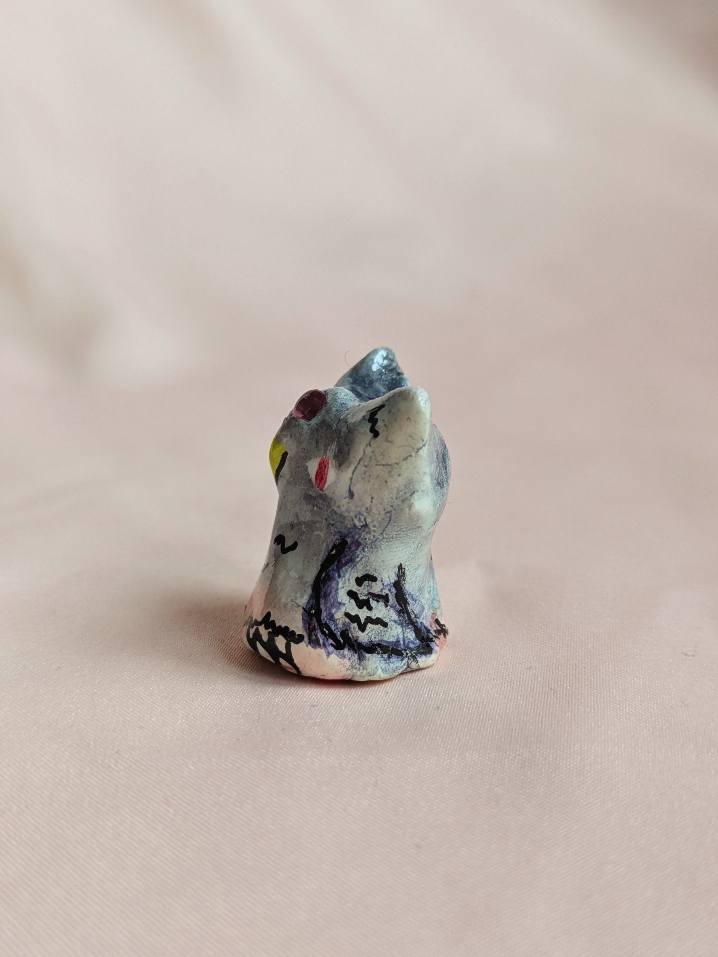 SNEK is a part of the ZOOKEEPERS NIGHTMARE series, containing eleven clay figures handmade by noah falke. Much like the HOLD ME TIGHT, NEVER LET ME GO clay series, this one also explores an imaginary world filled with magic. the figures are all made in a “wabi sabi” style where their flaws are a part of what makes them special and unique.